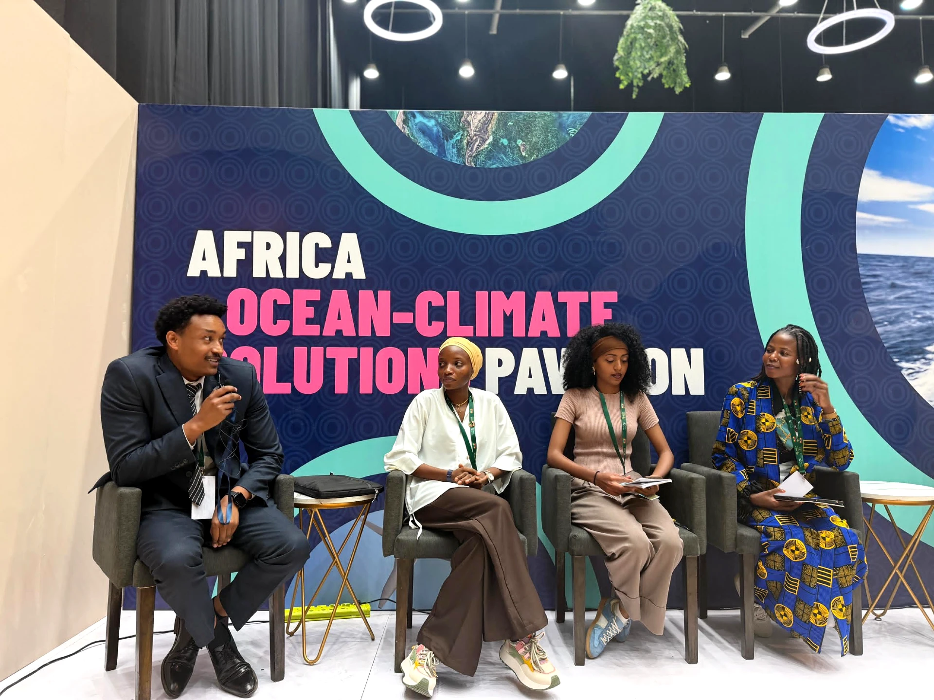 Later, at the Ocean Pavilion, we explored the importance of youth engagement in ocean advocacy and climate activism moderated by Shamim Nyanda. One key takeaway: we don not need to live near the ocean to care about it, because its health impacts us all. Panelists from SOE shared how they are building a network of over 2,000 youth ocean activists across Africa, a powerful reminder of the impact we can have when we organize and act collectively. I made an intervention while speaking on the panel on the importance of strengthening advocacy and